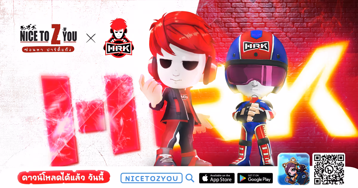 Nice to Z You ซ่อนหาปาร์ตี้แก๊ง ปาร์ตี้เกมแนวซ่อนหาอันดับ 1 ของไทย พัฒนาโดย บริษัท จัมโบ้ จั๊มพส์ จำกัด สตูดิโอพัฒนาเกมพัฒนาเกมสัญชาติไทย ประกาศความร่วมมืออย่างเป็นทางการกับ สตรีมเมอร์เบอร์ 1 แห่งวงการเกม ออกคอลเลคชั่นสกิน HRK เปิดตัวด้วย 2 สกินใหม่สุดเท่น่าสะสม Racer HRK และ HEARTROCKER